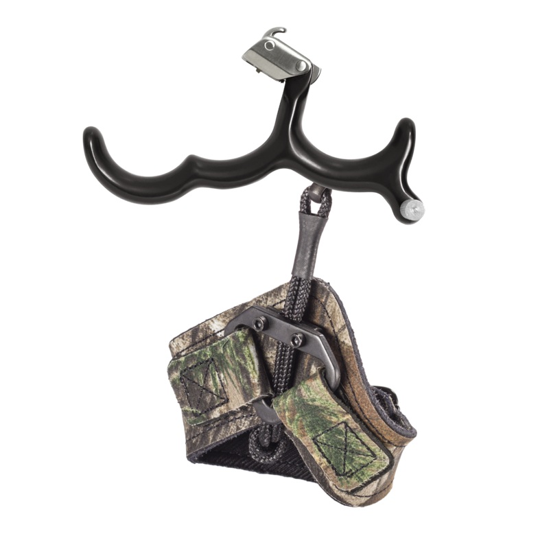 Features: Three-finger design Open ergonomic full-radius handle The answer for hunters wanting to shoot a back tension release Patented rope connector for infinite length adjustment Buckle Realtree Xtra