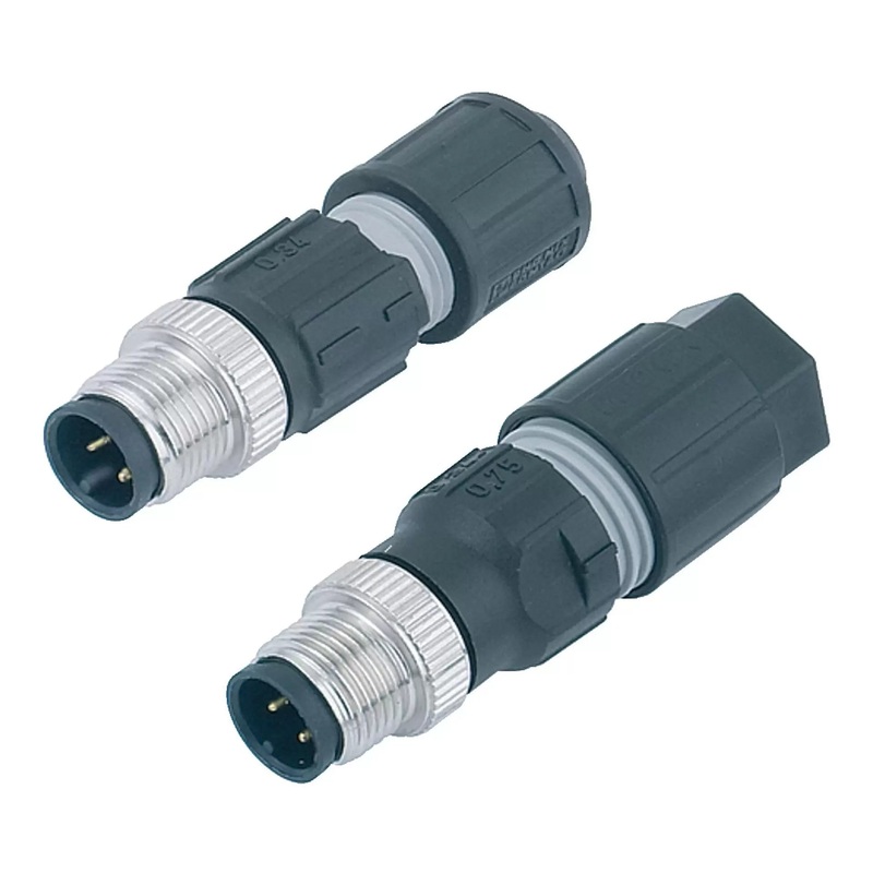 M12 Male cable connector, Contacts: 4, 4.0-8.0 mm, unshielded, IDC, IP67 This male cable connector with screw locking and a pin count of 4 is according to its protection class IP67 Dust-tight and has complete protection against contact and protection again