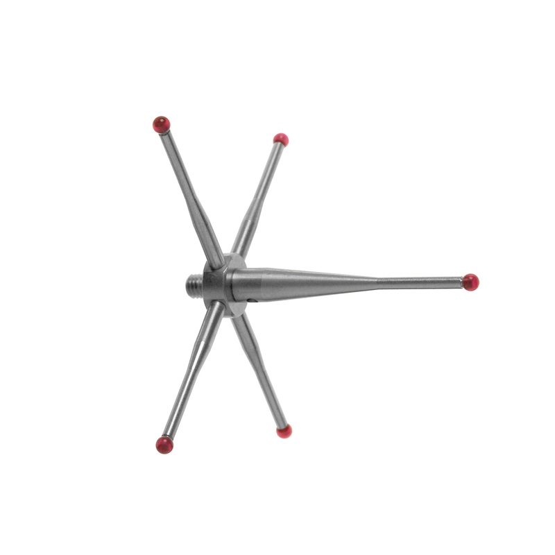 This multi-tip star stylus can be used where contact with different surfaces is needed without changing the stylus. Ruby is regarded as the industry standard for stylus tips. It is one of the hardest materials available and suitable for most applications. Due to adhesive pickup, ruby tips are not recommended for scanning aluminium parts.