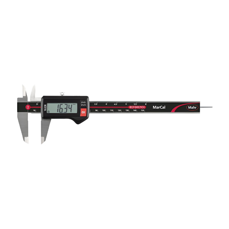 Digital caliper MarCal 16 ER Measuring range mm: 0 – 150 mm Resolution mm/inch: 0.01 / .0005″ Depth rod: rectangular Data interface: none Friction wheel: false IP protection category: None