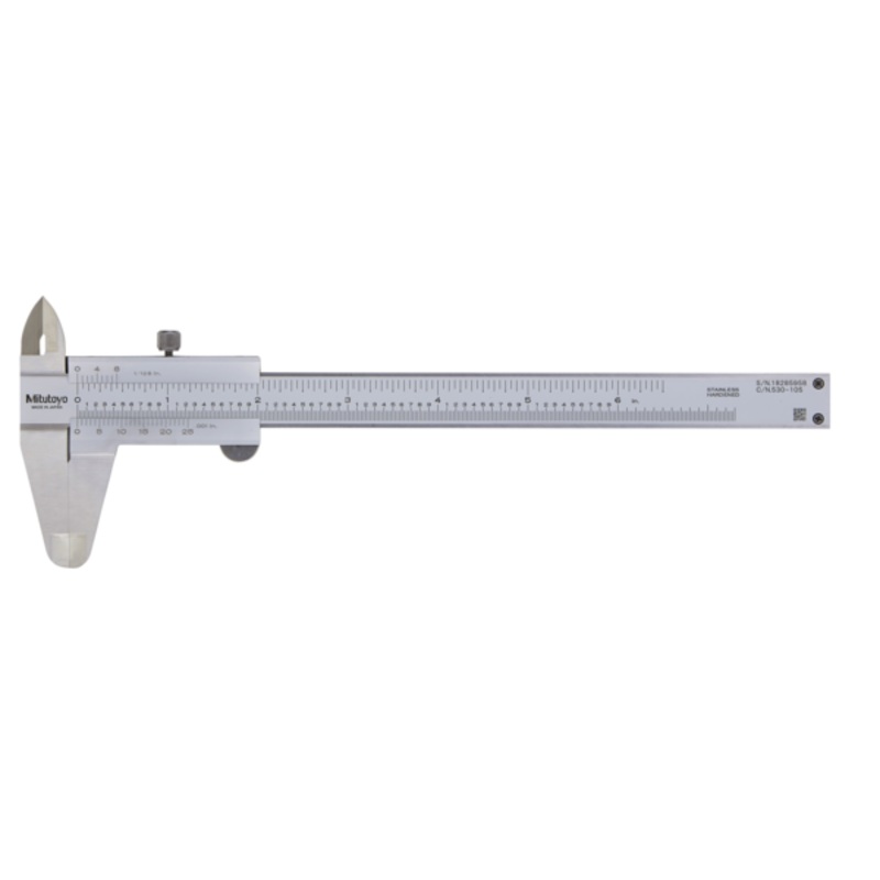 Mitutoyo; Vernier Caliper This is a standard type of vernier caliper that offers you the following benefits: Main scale and vernier scale satin chrome finish gives you high readability. Raised sliding surfaces. All images are for representation only.