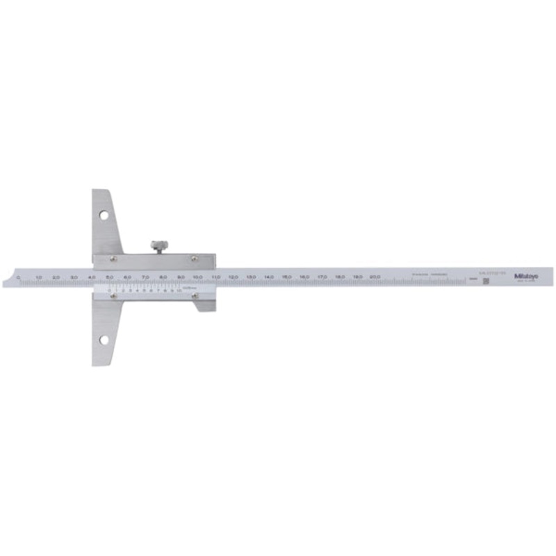 This vernier depth gauge offers you the following benefits: Its base and measuring faces are hardened and micro-lapped for robustness. Fine adjustment models available. Features Digital/Analog: Analog Inch-Metric: Metric Graduation: 0,05 mm Max. Permissibl