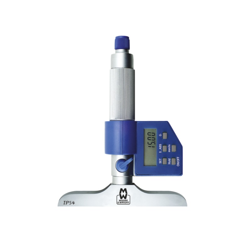 Moore & Wright Digital Depth Micrometer Digital Depth Micrometer by Moore & Wright comes complete with hardened and spherically lapped interchangeable rods. FEATURES Digital functions: mm / inch conversion, set, on/off, zero-setting, battery low indication