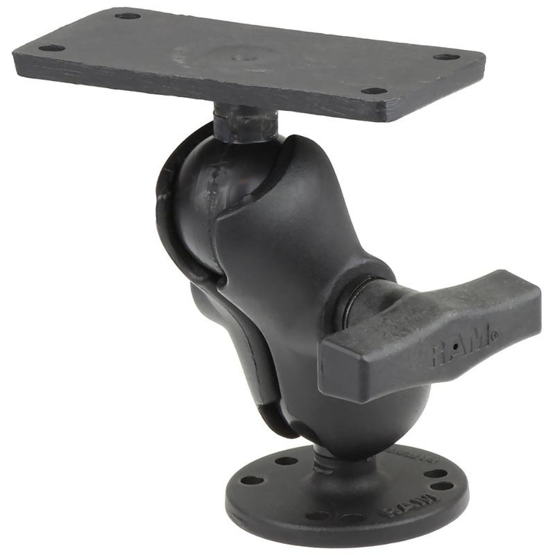 1.5" Ball Mount with 2.5" Round Base, Short Arm & 2" x 4" Plate for the Humminbird Helix 7 OnlyThe RAM-202-24-B-202U, powder coated marine grade aluminum mount, consists of a short double socket arm mount, one round 2.5" diameter round base with the univer