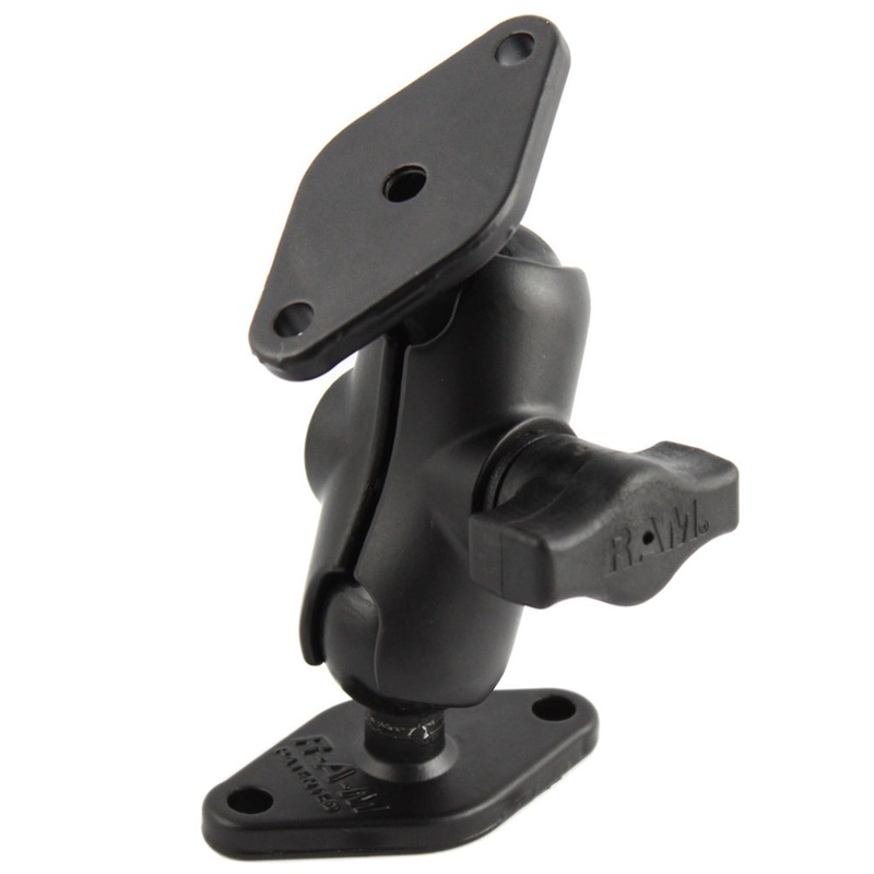 RAM 1" Diameter Ball Mount with Short Arm & 2/Diamond BasesThe RAM-B-102U-A consists of a short double socket arm and two diamond bases. The diamond bases measure 2.43" x 1.31" diamond base and contain two holes 1.912" from center to center, positioned at