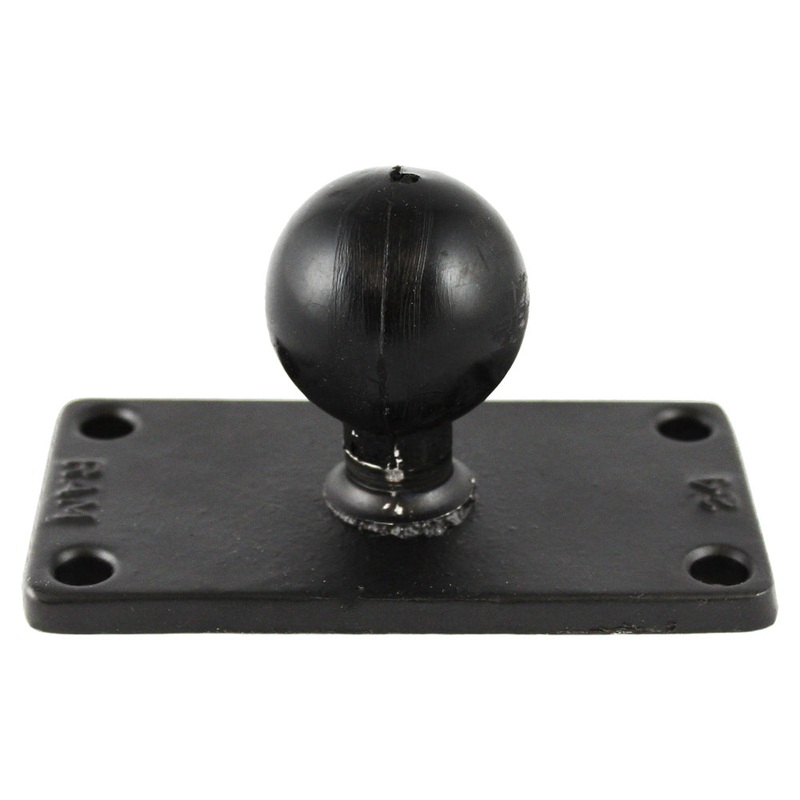 RAM 2" x 4" Rectangle Base with 1.5" BallThe RAM-202U-24 consists of a 1.5" diameter rubber ball connected at right angles to a 2" x 4" rectangular base. This mount has pre-drilled holes at each corner of the base plate. Material: Powder Coated Marine Grad