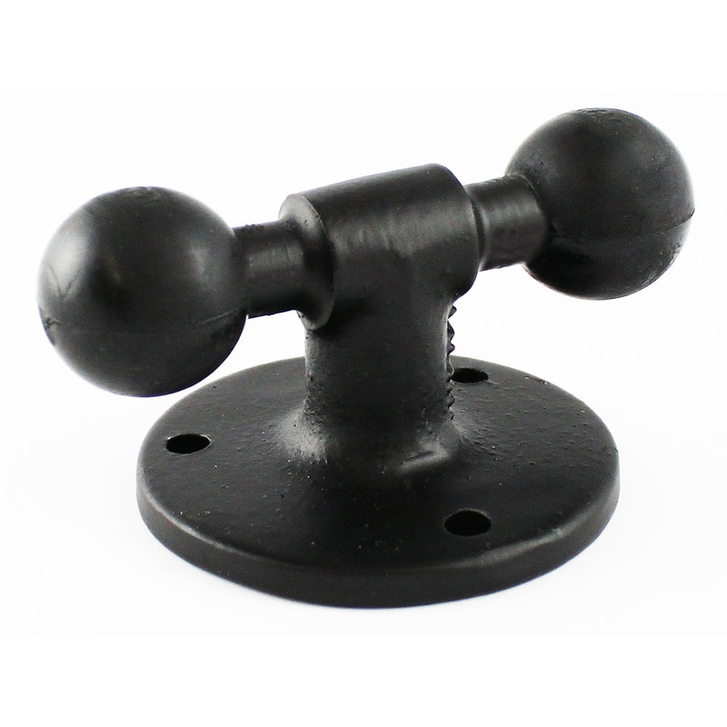 RAM 2.5" Round Base w/Post & 2 1" BallsColor: Black Powder CoatMaterial: Powder Coated Marine Grade AluminumBall Size: 1" Rubber Ball