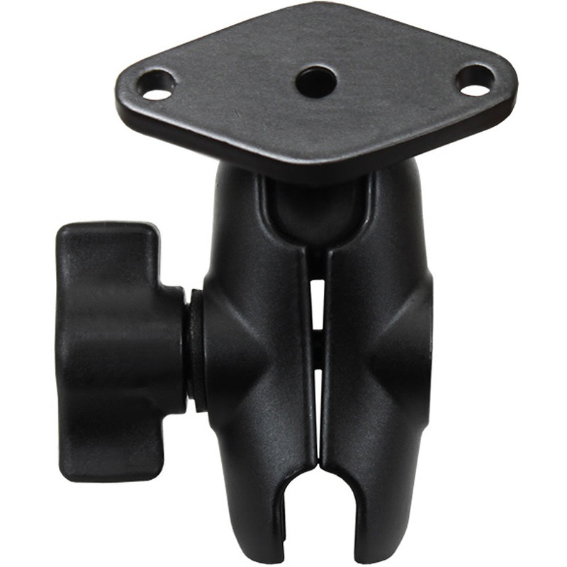 The RAM-B-103-A-238U consists of a diamond base and SHORT double socket arm that will accept 1″ ball bases. The diamond base measures 2.43″ x 1.31″ and contain two holes 1.912″ from center to center, positioned at both ends of the diamond base. The hole pattern found on the diamond base will connect to many RAM cradles, as well as third party cradles including mounts with the industry standard AMPS hole pattern. Designed into the mount is a 1″ diameter patented rubber ball and socket system with adjustment points at both ends of the socket arm; this with a twist of the arm knob allows for you to maneuver the mount to your optimum viewing position.