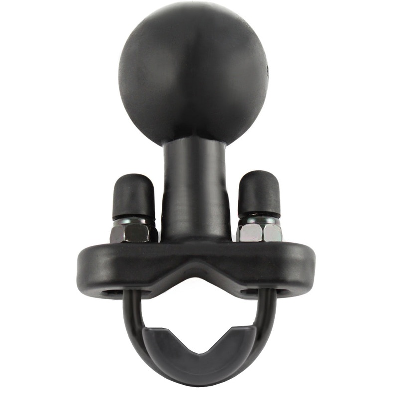 RAM Rail Base with Zinc Coated U-Bolt & 1.5" Ball for Rails from 0.5" to 1" in DiameterThe RAM motorcycle handlebar base contains a 1.5" rubber ball designed to sit at right angles to the mounting rail. The zinc coated u-bolt accommodates rails in diameter