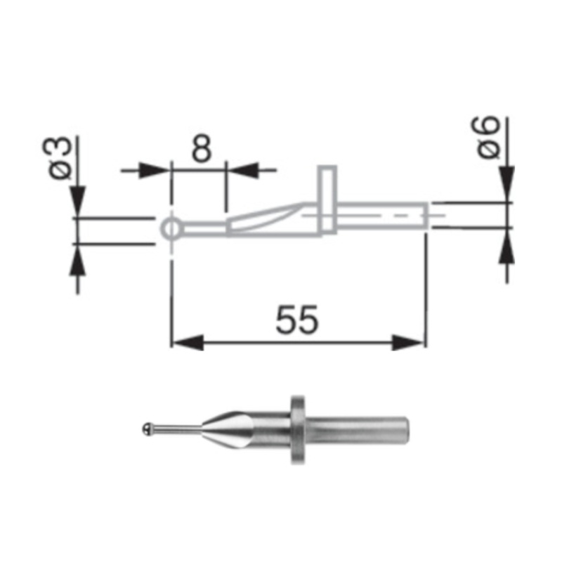 Tesa Ball Probe Carbide 6mm Shank, 3 mm, L = 55 mm 00760230