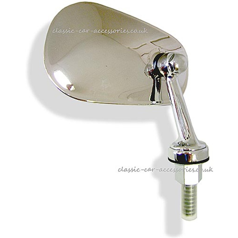 Oval/Round/Square shaped polished s/steel head with mirror 125mm x 85mm. Straight chromed stem with spring-back mechanism, approximately 80mm long with 32mm base. Requires a 16mm fixing hole. Can be fitted on left or right side. Please choose mirror head f