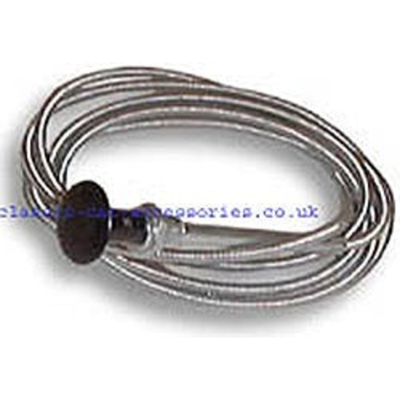 Universal cable: stiff wire type. The cable can still operate round corners, but the knob generally has to be pushed back manually, rather than pulled back by a spring at the operating end. Approx. 6' Long (1.8mtr). Plain black knob.