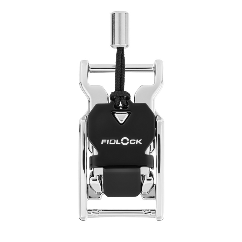 FIDLOCK V-BUCKLE 15 Palladium is a luxury magnetic buckle designed for use on a 5/8 inch webbing strap. This high-end metal buckle has a Palladium colored base& pull tab with a black varnished flap. Single bar attachment points are for fixes traps& does not contain an adjuster bar.